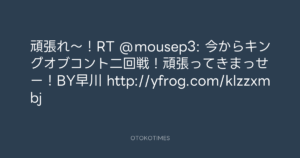 Koyo Maeda @koyomaeda – 12:07・2011年8月4日 2011 8/04 前田耕陽 2011-08-04 頑張れ~!RT @mousep3: 今からキングオブコント二回戦!頑張ってきまっせー!BY早川 http://yfrog.com/klzzxmbj Source:https://x.com/koyomaeda/status/98953237050306560 text X Post 前田耕陽 前田耕陽 この記事が気に入ったら フォローしてね! Follow @OtokoTimes1988 よかったらシェアしてね! URLをコピーしました! Koyo Maeda @koyomaeda - 11:19・2011年8月4日 Koyo Maeda @koyomaeda - 12:08・2011年8月4日 関連記事 Artist 前田耕陽 1968.08.16