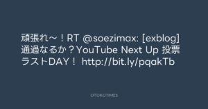頑張れ~!RT @soezimax: [exblog] 通過なるか?YouTube Next Up 投票ラストDAY! http://bit.ly/pqakTb