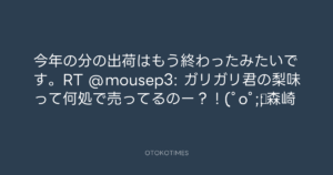 Koyo Maeda @koyomaeda – 16:52・2011年8月9日 2011 8/09 前田耕陽 2011-08-09 今年の分の出荷はもう終わったみたいです。RT @mousep3: ガリガリ君の梨味って何処で売ってるのー?!(゚o゚;;▷森崎 Source:https://x.com/koyomaeda/status/100836852520595457 text X Post 前田耕陽 前田耕陽 この記事が気に入ったら フォローしてね! Follow @OtokoTimes1988 よかったらシェアしてね! URLをコピーしました! Koyo Maeda @koyomaeda - 12:59・2011年8月9日 Koyo Maeda @koyomaeda - 17:03・2011年8月9日 関連記事 Artist 前田耕陽 1968.08.16