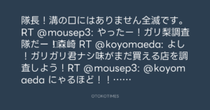 隊長!溝の口にはありません全滅です。RT @mousep3: やったー!ガリ梨調査隊だー!▷森崎 RT @koyomaeda: よし!ガリガリ君ナシ味がまだ買える店を調査しよう!RT @mousep3: @koyomaeda にゃるほど!!▷森崎