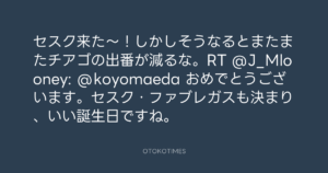 セスク来た~!しかしそうなるとまたまたチアゴの出番が減るな。RT @J_Mlooney: @koyomaeda おめでとうございます。セスク・ファブレガスも決まり、いい誕生日ですね。