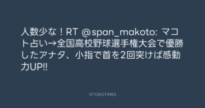 人数少な!RT @span_makoto: マコト占い→全国高校野球選手権大会で優勝したアナタ、小指で首を2回突けば感動力UP!!