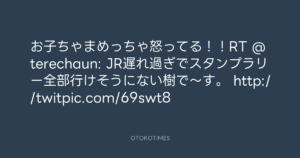 お子ちゃまめっちゃ怒ってる!!RT @terechaun: JR遅れ過ぎでスタンプラリー全部行けそうにない樹で~す。 http://twitpic.com/69swt8