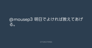 Koyo Maeda @koyomaeda – 21:01・2011年8月26日 2011 8/26 前田耕陽 2011-08-26 @mousep3 明日でよければ教えてあげる。 Source:https://x.com/koyomaeda/status/107060078959525888 text X Post 前田耕陽 前田耕陽 この記事が気に入ったら フォローしてね! Follow @OtokoTimes1988 よかったらシェアしてね! URLをコピーしました! Koyo Maeda @koyomaeda - 16:55・2011年8月26日 寺岡呼人 @yohito_teraoka - 10:53・2011年8月27日 関連記事 Artist 前田耕陽 1968.08.16