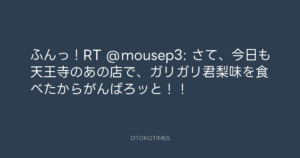 ふんっ!RT @mousep3: さて、今日も天王寺のあの店で、ガリガリ君梨味を食べたからがんばろッと!!