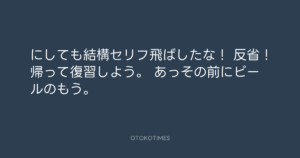 Koyo Maeda @koyomaeda – 22:31・2011年9月3日 2011 9/03 前田耕陽 2011-09-03 にしても結構セリフ飛ばしたな! 反省!帰って復習しよう。 あっその前にビールのもう。 Source:https://x.com/koyomaeda/status/109981932380631040 text X Post 前田耕陽 前田耕陽 この記事が気に入ったら フォローしてね! Follow @OtokoTimes1988 よかったらシェアしてね! URLをコピーしました! Koyo Maeda @koyomaeda - 22:29・2011年9月3日 Koyo Maeda @koyomaeda - 23:12・2011年9月3日 関連記事 Artist 前田耕陽 1968.08.16