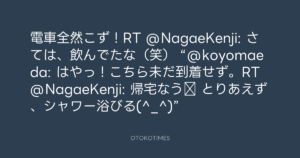 Koyo Maeda @koyomaeda – 23:52・2011年9月21日 2011 9/21 前田耕陽 2011-09-21 電車全然こず!RT @NagaeKenji: さては、飲んでたな(笑) “@koyomaeda: はやっ!こちら未だ到着せず。RT @NagaeKenji: 帰宅なう‼ とりあえず、シャワー浴びる(^_^)” Source:https://x.com/koyomaeda/status/116525194402729984 text X Post 前田耕陽 前田耕陽 この記事が気に入ったら フォローしてね! Follow @OtokoTimes1988 よかったらシェアしてね! URLをコピーしました! Koyo Maeda @koyomaeda - 23:41・2011年9月21日 Koyo Maeda @koyomaeda - 7:13・2011年9月23日 関連記事 Artist 前田耕陽 1968.08.16