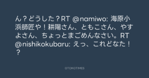 ん?どうした?RT @namiwo: 海原小浜師匠や!耕陽さん、ともこさん、やすよさん、ちょっとまごめんなさい。RT @nishikokubaru: えっ、これどなた!?