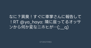 Koyo Maeda @koyomaeda – 10:34・2011年9月26日 2011 9/26 前田耕陽 2011-09-26 なに?異臭!すぐに車掌さんに報告して!RT @ya_haya: 隣に座ってるオッサンから何か変なニホヒが…(;_q) Source:https://x.com/koyomaeda/status/118136298031681536 text X Post 前田耕陽 前田耕陽 この記事が気に入ったら フォローしてね! Follow @OtokoTimes1988 よかったらシェアしてね! URLをコピーしました! Koyo Maeda @koyomaeda - 9:44・2011年9月25日 青山英樹 @aoyama_hideki - 13:57・2011年9月26日 関連記事 Artist 前田耕陽 1968.08.16