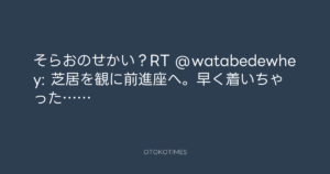 Koyo Maeda @koyomaeda – 18:30・2011年10月6日 2011 10/06 前田耕陽 2011-10-06 そらおのせかい?RT @watabedewhey: 芝居を観に前進座へ。早く着いちゃった…… Source:https://x.com/koyomaeda/status/121880077419028480 text X Post 前田耕陽 前田耕陽 この記事が気に入ったら フォローしてね! Follow @OtokoTimes1988 よかったらシェアしてね! URLをコピーしました! 青山英樹 @aoyama_hideki - 17:06・2011年10月6日 Koyo Maeda @koyomaeda - 21:57・2011年10月6日 関連記事 Artist 前田耕陽 1968.08.16