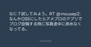 なに?試してみよう。RT @mousep2: なんかOS5にしたらアメブロのアプリでブログ投稿する時に写真途中に挟めなくなってる。