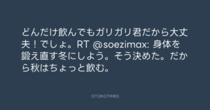 Koyo Maeda @koyomaeda – 0:15・2011年10月19日 2011 10/19 前田耕陽 2011-10-19 どんだけ飲んでもガリガリ君だから大丈夫!でしょ。RT @soezimax: 身体を鍛え直す冬にしよう。そう決めた。だから秋はちょっと飲む。 Source:https://x.com/koyomaeda/status/126315491244515328 text X Post 前田耕陽 前田耕陽 この記事が気に入ったら フォローしてね! Follow @OtokoTimes1988 よかったらシェアしてね! URLをコピーしました! 青山英樹 @aoyama_hideki - 19:53・2011年10月18日 青山英樹 @aoyama_hideki - 10:11・2011年10月19日 関連記事 Artist 前田耕陽 1968.08.16