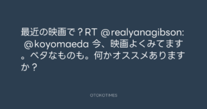 Koyo Maeda @koyomaeda – 15:51・2011年11月13日 2011 11/13 前田耕陽 2011-11-13 最近の映画で?RT @realyanagibson: @koyomaeda 今、映画よくみてます。ベタなものも。何かオススメありますか? Source:https://x.com/koyomaeda/status/135610741091876864 text X Post 前田耕陽 前田耕陽 この記事が気に入ったら フォローしてね! Follow @OtokoTimes1988 よかったらシェアしてね! URLをコピーしました! 青山英樹 @aoyama_hideki - 13:29・2011年11月13日 Koyo Maeda @koyomaeda - 17:12・2011年11月13日 関連記事 Artist 前田耕陽 1968.08.16
