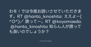 Koyo Maeda @koyomaeda – 17:06・2011年12月21日 2011 12/21 前田耕陽 2011-12-21 わを!では今度お誘いさせていただきます。RT @hanta_kinoshita: ええよー(^O^)/ 誘ってー。RT @koyomaeda: @hanta_kinoshita 知らん人が誘っても良いのでしょうか? Source:https://x.com/koyomaeda/status/149400302217478145 text X Post 前田耕陽 前田耕陽 この記事が気に入ったら フォローしてね! Follow @OtokoTimes1988 よかったらシェアしてね! URLをコピーしました! 寺岡呼人 @yohito_teraoka - 16:55・2011年12月21日 Koyo Maeda @koyomaeda - 17:34・2011年12月21日 関連記事 Artist 前田耕陽 1968.08.16