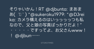 そりゃいかん!RT @djbunta: まあまあ( ´▽`) “@sukeroku1979: “@DJreika: カメラ構えるのはいっっっっつも私なので、父と娘の写真ばっかりだよ!” ・・・・・ですってよ、お父さんwww!! @djbunta”
