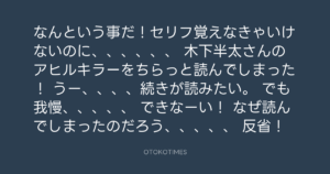 なんという事だ!セリフ覚えなきゃいけないのに、、、、、、