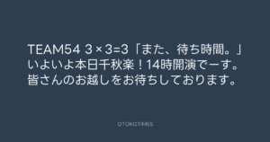 Koyo Maeda @koyomaeda – 8:38・2012年3月4日 2012 3/04 前田耕陽 2012-03-04 TEAM54 3×3=3「また、待ち時間。」いよいよ本日千秋楽!14時開演でーす。皆さんのお越しをお待ちしております。 Source:https://x.com/koyomaeda/status/176089116029620224 text X Post 前田耕陽 前田耕陽 この記事が気に入ったら フォローしてね! Follow @OtokoTimes1988 よかったらシェアしてね! URLをコピーしました! Koyo Maeda @koyomaeda - 23:41・2012年3月3日 青山英樹 @aoyama_hideki - 9:30・2012年3月4日 関連記事 Artist 前田耕陽 1968.08.16