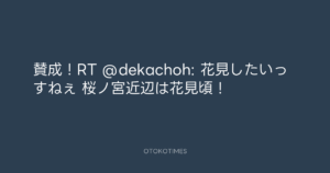 Koyo Maeda @koyomaeda – 19:09・2012年4月5日 2012 4/05 前田耕陽 2012-04-05 賛成!RT @dekachoh: 花見したいっすねぇ 桜ノ宮近辺は花見頃! Source:https://x.com/koyomaeda/status/187844356970000384 text X Post 前田耕陽 前田耕陽 この記事が気に入ったら フォローしてね! Follow @OtokoTimes1988 よかったらシェアしてね! URLをコピーしました! 青山英樹 @aoyama_hideki - 18:56・2012年4月5日 青山英樹 @aoyama_hideki - 21:11・2012年4月5日 関連記事 Artist 前田耕陽 1968.08.16
