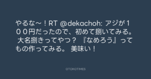 Koyo Maeda @koyomaeda – 15:26・2012年4月16日 2012 4/16 前田耕陽 2012-04-16 やるな〜!RT @dekachoh: アジが100円だったので、初めて捌いてみる。 大名捌きってやつ? 『なめろう』ってもの作ってみる。 美味い! Source:https://x.com/koyomaeda/status/191774440797904897 text X Post 前田耕陽 前田耕陽 この記事が気に入ったら フォローしてね! Follow @OtokoTimes1988 よかったらシェアしてね! URLをコピーしました! 青山英樹 @aoyama_hideki - 12:54・2012年4月16日 寺岡呼人 @yohito_teraoka - 16:28・2012年4月16日 関連記事 Artist 前田耕陽 1968.08.16