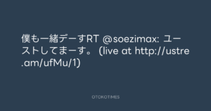 Koyo Maeda @koyomaeda – 21:32・2012年4月17日 2012 4/17 前田耕陽 2012-04-17 僕も一緒デーすRT @soezimax: ユーストしてまーす。 (live at http://ustre.am/ufMu/1) Source:https://x.com/koyomaeda/status/192229132862631936 text X Post 前田耕陽 前田耕陽 この記事が気に入ったら フォローしてね! Follow @OtokoTimes1988 よかったらシェアしてね! URLをコピーしました! Koyo Maeda @koyomaeda - 19:39・2012年4月17日 青山英樹 @aoyama_hideki - 22:22・2012年4月17日 関連記事 Artist 前田耕陽 1968.08.16
