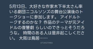 5月13日、大好きな作家木下半太さん率いる劇団ニコルソンズの舞台公演後のトークショーに参加します。