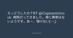 Koyo Maeda @koyomaeda – 14:19・2012年5月14日 2012 5/14 前田耕陽 2012-05-14 えっどうしたの?RT @CaptainIchirock: 病院行ってきました。骨に異常はないようです。あー、情けない(ーー;) Source:https://x.com/koyomaeda/status/201904564386013184 text X Post 前田耕陽 前田耕陽 この記事が気に入ったら フォローしてね! Follow @OtokoTimes1988 よかったらシェアしてね! URLをコピーしました! Koyo Maeda @koyomaeda - 10:34・2012年5月14日 Koyo Maeda @koyomaeda - 18:14・2012年5月14日 関連記事 Artist 前田耕陽 1968.08.16