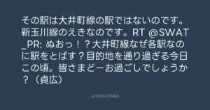 Koyo Maeda @koyomaeda – 10:06・2012年5月22日 2012 5/22 前田耕陽 2012-05-22 その駅は大井町線の駅ではないのです。新玉川線のえきなのです。RT @SWAT_PR: ぬおっ!?大井町線なぜ各駅なのに駅をとばす?目的地を通り過ぎる今日この頃。皆さまどーお過ごしでしょうか?(貞広) Source:https://x.com/koyomaeda/status/204739890766819328 text X Post 前田耕陽 前田耕陽 この記事が気に入ったら フォローしてね! Follow @OtokoTimes1988 よかったらシェアしてね! URLをコピーしました! 寺岡呼人 @yohito_teraoka - 1:11・2012年5月22日 寺岡呼人 @yohito_teraoka - 11:41・2012年5月22日 関連記事 Artist 前田耕陽 1968.08.16