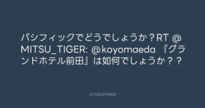 Koyo Maeda @koyomaeda – 19:36・2012年6月1日 2012 6/01 前田耕陽 2012-06-01 パシフィックでどうでしょうか?RT @MITSU_TIGER: @koyomaeda 『グランドホテル前田』は如何でしょうか?? Source:https://x.com/koyomaeda/status/208507403686248448 text X Post 前田耕陽 前田耕陽 この記事が気に入ったら フォローしてね! Follow @OtokoTimes1988 よかったらシェアしてね! URLをコピーしました! Koyo Maeda @koyomaeda - 14:40・2012年6月1日 寺岡呼人 @yohito_teraoka - 0:38・2012年6月2日 関連記事 Artist 前田耕陽 1968.08.16