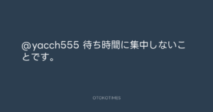 Koyo Maeda @koyomaeda – 9:38・2012年8月8日 2012 8/08 前田耕陽 2012-08-08 @yacch555 待ち時間に集中しないことです。 Source:https://x.com/koyomaeda/status/232999225162616832 text X Post 前田耕陽 前田耕陽 この記事が気に入ったら フォローしてね! Follow @OtokoTimes1988 よかったらシェアしてね! URLをコピーしました! 寺岡呼人 @yohito_teraoka - 22:59・2012年8月7日 Koyo Maeda @koyomaeda - 13:22・2012年8月8日 関連記事 Artist 前田耕陽 1968.08.16