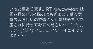 いった事あります。RT @wowyear: 祗園花月のビル4階のよもぎエステ凄く気持ちよろしいので皆さんも是非そちらで癒されに行ってみてください*・゜゚・*:.。..。.:*・'(*゚▽゚*)’・*:.。. .。.・*ウーイェイですよ☆*:.。. o(≧▽≦)o .。.:*☆