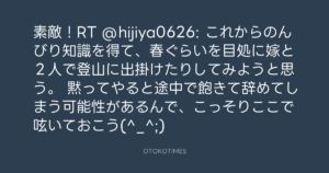 素敵!RT @hijiya0626: これからのんびり知識を得て、春ぐらいを目処に嫁と2人で登山に出掛けたりしてみようと思う。