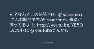 Koyo Maeda @koyomaeda – 1:46・2013年1月16日 2013 1/16 前田耕陽 2013-01-16 ん?なんでこの時間?RT @soezimax: こんな時間ですが…soezimax 道路が凍ってるよ!: http://youtu.be/YE8ODCN4kfc @youtubeさんから Source:https://x.com/koyomaeda/status/291224961660628993 text X Post 前田耕陽 前田耕陽 この記事が気に入ったら フォローしてね! Follow @OtokoTimes1988 よかったらシェアしてね! URLをコピーしました! 青山英樹 @aoyama_hideki - 13:39・2013年1月15日 青山英樹 @aoyama_hideki - 22:23・2013年1月16日 関連記事 Artist 前田耕陽 1968.08.16