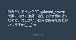 Koyo Maeda @koyomaeda – 9:48・2013年6月6日 2013 6/06 前田耕陽 2013-06-06 飲みだけですか?RT @koshi_sawa: 大阪に向けて出発!宿泊は心斎橋の近くなので、付近のいい飲み屋情報をおねがいしますm(_ _)m Source:https://x.com/koyomaeda/status/342442956214632450 text X Post 前田耕陽 前田耕陽 この記事が気に入ったら フォローしてね! Follow @OtokoTimes1988 よかったらシェアしてね! URLをコピーしました! Koyo Maeda @koyomaeda - 0:04・2013年6月6日 寺岡 呼人 @yohitoteraoka - 16:26・2013年6月6日(IG post) 関連記事 Artist 前田耕陽 1968.08.16