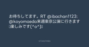 Koyo Maeda @koyomaeda – 11:25・2013年8月23日 2013 8/23 前田耕陽 2013-08-23 お待ちしてます。RT @ibachan1123: @koyomaeda来週東京公演に行きます♪楽しみです(^o^)♪ Source:https://x.com/koyomaeda/status/370733495686922240 text X Post 前田耕陽 前田耕陽 この記事が気に入ったら フォローしてね! Follow @OtokoTimes1988 よかったらシェアしてね! URLをコピーしました! Koyo Maeda @koyomaeda - 11:08・2013年8月23日 Koyo Maeda @koyomaeda - 11:26・2013年8月23日 関連記事 Artist 前田耕陽 1968.08.16