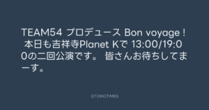 Koyo Maeda @koyomaeda – 9:40・2013年8月30日 2013 8/30 前田耕陽 2013-08-30 TEAM54 プロデュース Bon voyage ! 本日も吉祥寺Planet Kで 13:00/19:00の二回公演です。 皆さんお待ちしてまーす。 Source:https://x.com/koyomaeda/status/373243776199700482 text X Post 前田耕陽 前田耕陽 この記事が気に入ったら フォローしてね! Follow @OtokoTimes1988 よかったらシェアしてね! URLをコピーしました! 寺岡呼人 @yohito_teraoka - 19:44・2013年8月29日 青山英樹 @aoyama_hideki - 10:43・2013年8月30日 関連記事 Artist 前田耕陽 1968.08.16
