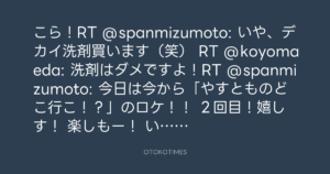 こら!RT @spanmizumoto: いや、デカイ洗剤買います(笑) RT @koyomaeda: 洗剤はダメですよ!RT @spanmizumoto: 今日は今から「やすとものどこ行こ!?」のロケ!!