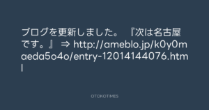 Koyo Maeda @koyomaeda – 12:24・2015年4月14日 2015 4/14 前田耕陽 2015-04-14 ブログを更新しました。 『次は名古屋です。』 ⇒ http://ameblo.jp/k0y0maeda5o4o/entry-12014144076.html Source:https://x.com/koyomaeda/status/587818602172059649 text X Post 前田耕陽 前田耕陽 この記事が気に入ったら フォローしてね! Follow @OtokoTimes1988 よかったらシェアしてね! URLをコピーしました! 寺岡 呼人 @yohitoteraoka - 22:14・2015年4月11日(IG post) 寺岡 呼人 @yohitoteraoka - 14:03・2015年4月14日(IG post) 関連記事 Artist 前田耕陽 1968.08.16
