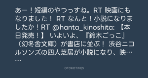 あー!短編のやつっすね。RT 映画にもなりました! RT なんと!小説になりましたか!RT @hanta_kinoshita: 【本日発売!】