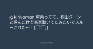 @kiriyaman 車乗ってて、桐山クーンと呼んだけど音楽聴いてたみたいでスルーされた〜!( ̄◇ ̄;)