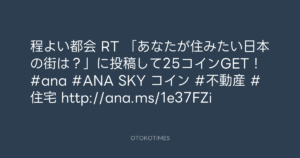 程よい都会 RT 「あなたが住みたい日本の街は?」に投稿して25コインGET! #ana #ANA SKY コイン #不動産 #住宅 http://ana.ms/1e37FZi