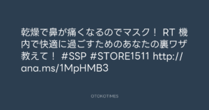 Koyo Maeda @koyomaeda – 14:03・2015年11月7日 2015 11/07 前田耕陽 2015-11-07 乾燥で鼻が痛くなるのでマスク! RT 機内で快適に過ごすためのあなたの裏ワザ教えて! #SSP #STORE1511 http://ana.ms/1MpHMB3 Source:https://x.com/koyomaeda/status/662857770602004481 text X Post 前田耕陽 前田耕陽 この記事が気に入ったら フォローしてね! Follow @OtokoTimes1988 よかったらシェアしてね! URLをコピーしました! 寺岡 呼人 @yohitoteraoka - 10:22・2015年11月7日(IG post) Koyo Maeda @koyomaeda - 14:04・2015年11月7日 関連記事 Artist 前田耕陽 1968.08.16