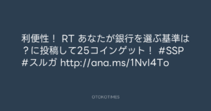利便性! RT あなたが銀行を選ぶ基準は?に投稿して25コインゲット! #SSP #スルガ http://ana.ms/1NvI4To