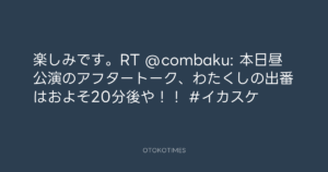 楽しみです。RT @combaku: 本日昼公演のアフタートーク、わたくしの出番はおよそ20分後や!! #イカスケ