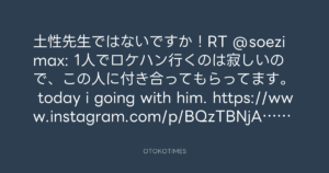 土性先生ではないですか!RT @soezimax: 1人でロケハン行くのは寂しいので、この人に付き合ってもらってます。 today i going with him. https://www.instagram.com/p/BQzTBNjAqAD/
