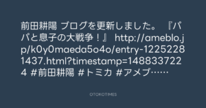 前田耕陽 ブログを更新しました。 『パパと息子の大戦争!』