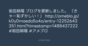 前田耕陽 ブログを更新しました。 『きゃー恥ずかしい!』