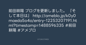 前田耕陽 ブログを更新しました。 『そして本日は』