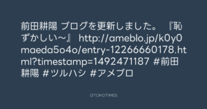 前田耕陽 ブログを更新しました。 『恥ずかしい〜』