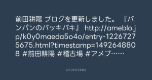 前田耕陽 ブログを更新しました。 『パンパンのバッキバキ』