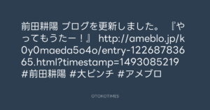 前田耕陽 ブログを更新しました。 『やってもうたー!』